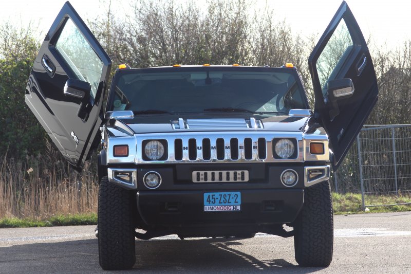 Onderstaand een aantal foto’s van de Hummer H2 limousines die u kunt huren bij HummerHuren.nl